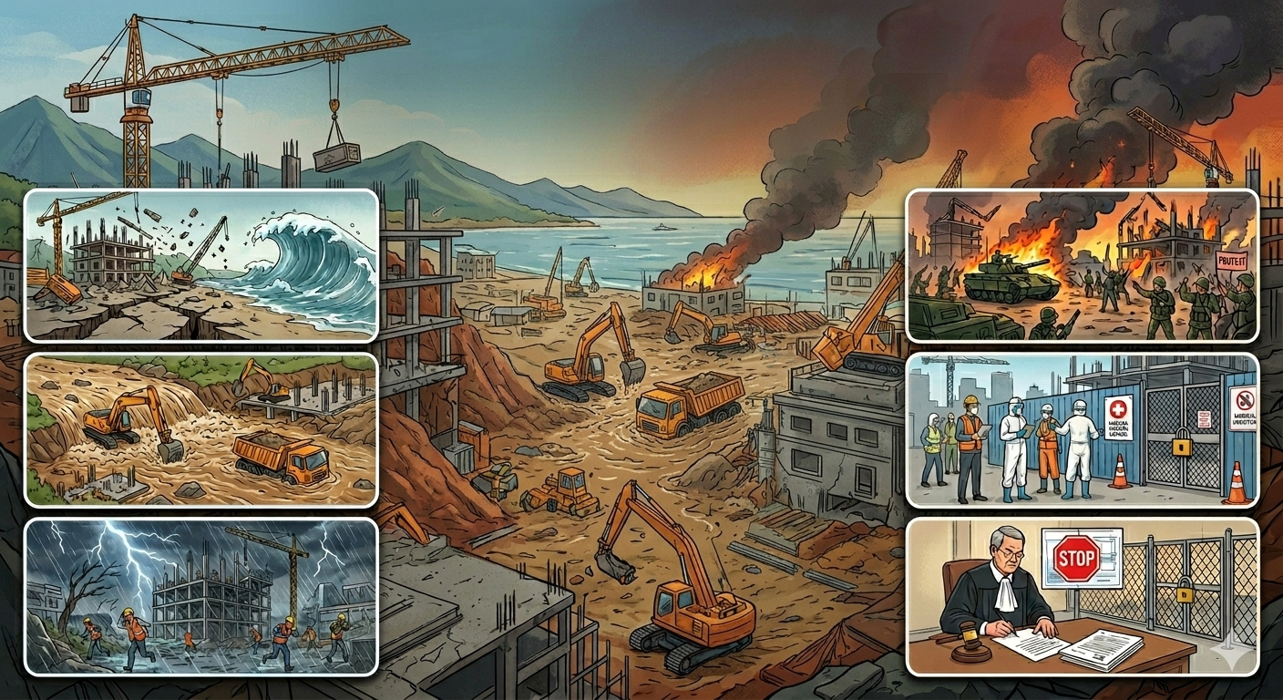 Force majeure bukan sekadar risiko bisnis biasa, melainkan peristiwa luar biasa yang secara langsung membuat kewajiban kontrak tidak dapat dilaksanakan. Oleh karena itu, pemahaman yang tepat mengenai konsep ini menjadi sangat penting agar tidak terjadi kesalahpahaman dalam pengajuan klaim maupun pembagian risiko antara kontraktor dan pemilik proyek.